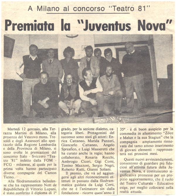 Nel 1970/71, con la commedia COSTRUIRE di Mario Milani - uno dei migliori lavori maschili messi in scena dalla nostra filodrammatica - la Juventus Nova ottiene il secondo premio al Concorso Teatrale Diocesano.